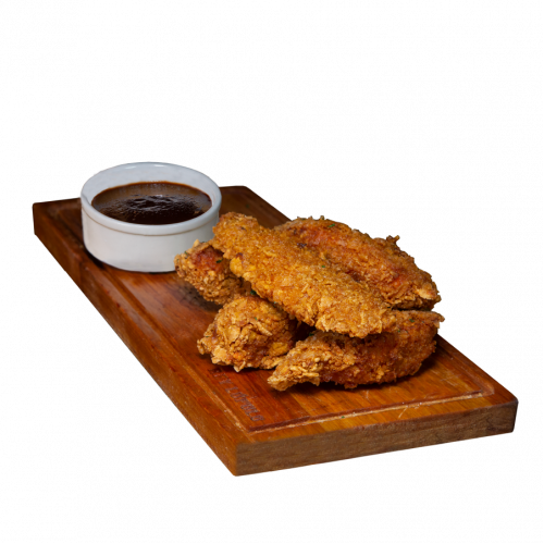 Pollo crocante, dip de barbacoa